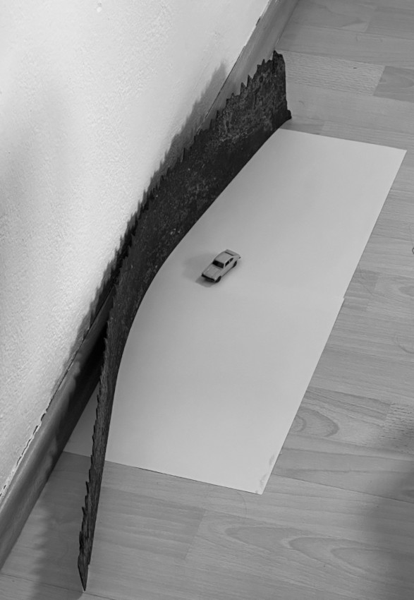 After some quick video tests, we got excited! We put a little orange miniature car on the table and pointed the webcam to it, using the "Flare"-filter. We looked at the monitor: The car was moving! Full speed! Although it was just standing still on the table! We were on a good path. The song Flare is about our early adulthood, about freedom and the feeling of being at the brink of an exciting future. It has the vibe of a magical road trip, so the car was a perfect fit! And we could invite the audience to joins us for the ride.