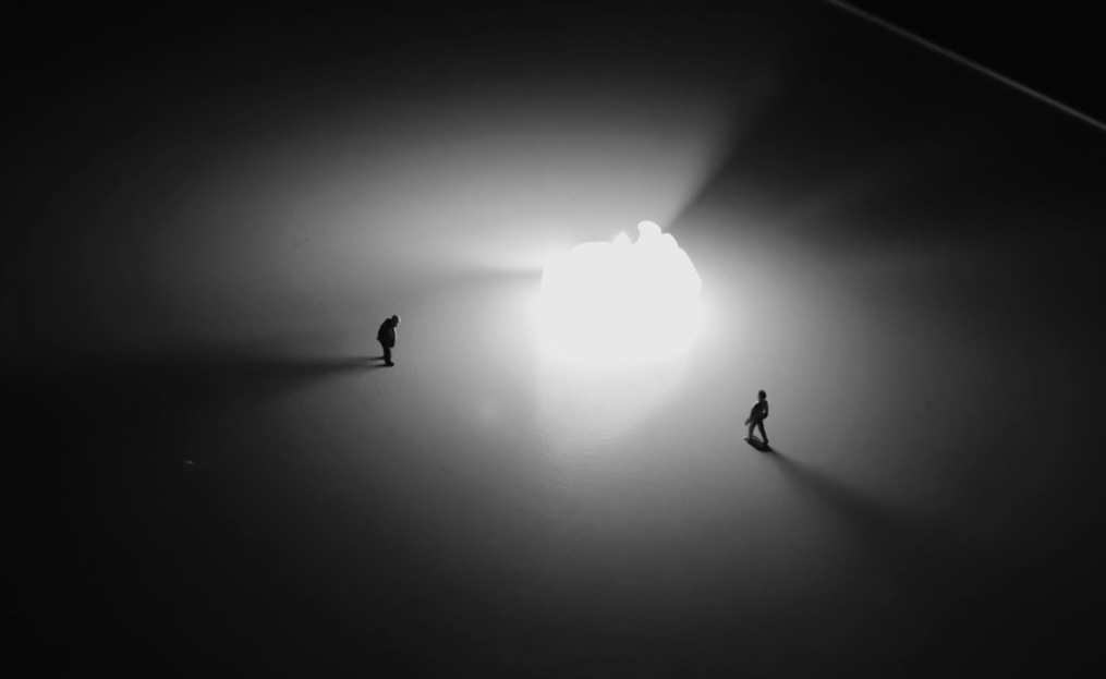 It would take off through a majestic beam of light disappearing into the dark sky: meaning by filming a candle through two pencils (remember the double-slit experiment from Physics class?). We attached a little piece of string to the orange car to steer it through the forest and have it overtake other cars. We created sunrises and sunsets by moving a lamp behind a piece of white paper. Tons of ideas poured out of the ether into our heads. We were busy shooting day and night.
